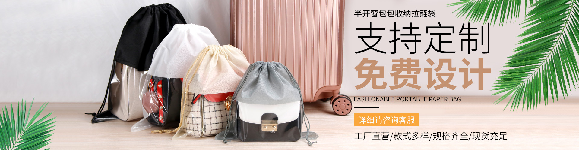 温州国盛包装制品有限公司是一家从事包装行业二十余年,专业生产各类无纺布袋、服装拉链袋、束口袋、无纺布棉被袋、PE抽绳袋、PVC袋、纸袋等各种产品生产销售、售后于一体的综合性企业。公司以“科技创新、追求个性,技术先进、工艺优良规模经营追求品质、精工细作"是我们一惯的经营理念。多年来,正是这种企业的精神使公司不断发展壮大。先进的设备和现代企业管理制度以及优质管理和技术人才造就了企业的优良品质和良好的信誉。在前进和发展的道路中,追求质量、精工细作的理念和重合同讲信誉的口碑赢得了无数回头客得到了我们的合作伙伴的一致好评,选择我们将是您明智的选择欢迎各界朋友莅临参观、指导和业务洽谈。